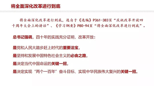 劉愛力在領(lǐng)學(xué)《將全面深化改革進(jìn)行到底》相關(guān)內(nèi)容時表示,習(xí)近平總書記深刻闡釋了全面深化改革是有方向、有立場、有原則的??偰繕?biāo):完善和發(fā)展中國特色社會主義制度、推進(jìn)國家治理體系和治理能力現(xiàn)代化。出發(fā)點(diǎn)和落腳點(diǎn):促進(jìn)社會公平正義、增進(jìn)人民福祉。哪里有不符合社會公平正義的問題,哪里就需要改革;哪個領(lǐng)域哪個環(huán)節(jié)問題突出,哪個領(lǐng)域哪個環(huán)節(jié)就是改革的重點(diǎn)。