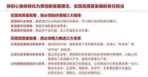 根據(jù)中央要求,結(jié)合郵政實際,劉愛力強(qiáng)調(diào)指出,中國郵政要將“不忘初心、牢記使命”轉(zhuǎn)化為新時代郵政的責(zé)任擔(dān)當(dāng),切實做到“六個轉(zhuǎn)化”。