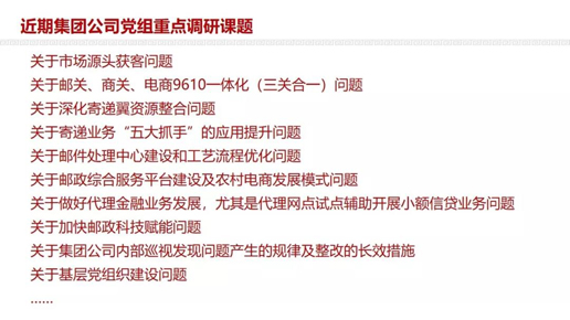 我們要按照主題教育有關(guān)要求,把學(xué)習(xí)教育、調(diào)查研究、檢視問題、整改落實貫穿全過程,確保主題教育工作成效。針對調(diào)研發(fā)現(xiàn)的問題,集團(tuán)公司黨組還將進(jìn)行專題研究,形成重點(diǎn)調(diào)研課題,黨組各位成員將列出調(diào)研提綱,明確調(diào)研時間、調(diào)研問題和調(diào)研方式等,確保調(diào)研取得實實在在的成效。