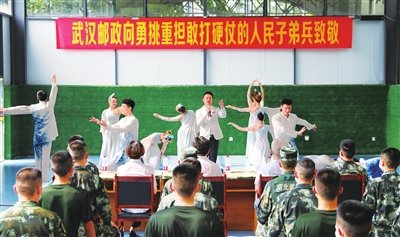 “八一”建軍節(jié)前夕,武漢郵政藝術(shù)團(tuán)走進(jìn)駐守長江大橋的武警部隊軍營,為官兵送去《強(qiáng)軍之路》郵冊等郵品和書籍,并表演了精彩的文藝節(jié)目。部隊官兵也為前來慰問的郵政工作人員表演了精彩的擒拿格斗和舞獅節(jié)目,營造了雙擁共建促和諧的濃厚氛圍。多年來,武漢郵政通過“擁軍郵路”積極關(guān)心軍營戰(zhàn)士,提供不間斷、多元化的郵政服務(wù)。在今年疫情防控期間,武漢郵政不間斷投送黨報黨刊和各類物資,得到了官兵們的一致好評?!跣し?nbsp;攝影報道