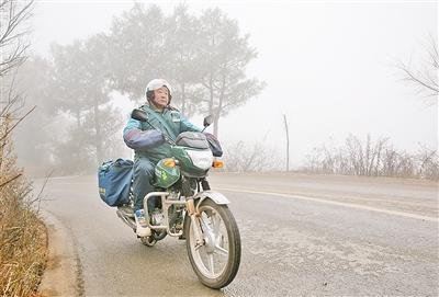 譚加買每周投遞三天,出班前一天都會(huì)來郵政所把第二天要投遞的報(bào)紙、雜志等郵件分揀好,第二天早早拉上就出門。他負(fù)責(zé)投遞7個(gè)村,每個(gè)村委會(huì)、學(xué)校的報(bào)刊、包裹、信件重量一般都在35公斤以上,隨時(shí)把他摩托車上的兩個(gè)大帆布包裝得滿滿的。遇到《云嶺先鋒》《今日會(huì)澤》《半月談》等雜志多的時(shí)候,兩輪摩托車根本拉不動(dòng),他就騎家里的大三輪車去送。他一般早上6點(diǎn)30分出門,到下午3點(diǎn)左右回到郵政所,冬季投遞時(shí)間更長(zhǎng)一點(diǎn),一圈循環(huán)下來,里程有80多公里。