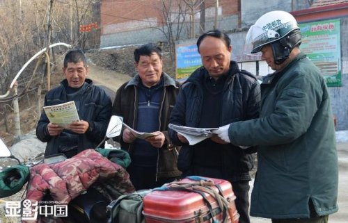 董乃軍(右)在大馬峪村投遞,他的摩托車一停,會吸引來許多村民。盡管作為一名農(nóng)村郵遞員待遇不高,但他已經(jīng)成為這條郵路上不變的風景,山里的村民更是離不開他,他說:“我很熱愛自己的這份投遞工作,我舍不得山里的人們,我會一直沿著這條郵路走下去?!?/p>