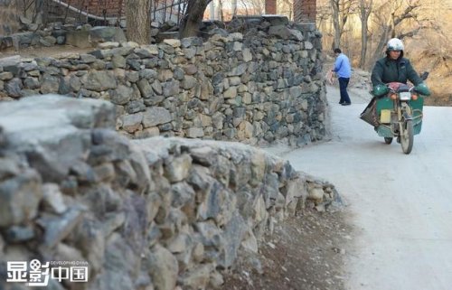立冬了,山谷里的風夾著料峭的寒意,涼意更重了。常年在山里做投遞工作的山村郵遞員董乃軍對此深有體會,山里的風要比山外冷。圖為董乃軍騎著摩托車翻越去往葫蘆峪村的山脊。