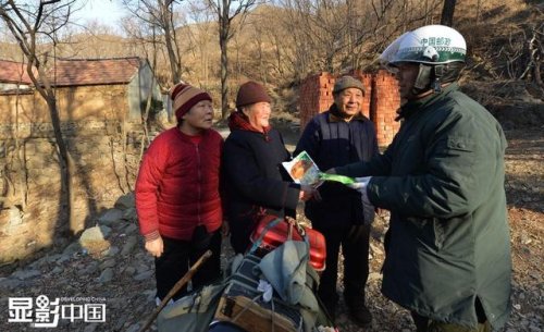 董乃軍為東峪村的李大媽(中)捎來代買的東西,李大媽很是高興,“小董這孩子太實誠了,心地也好,我這老太婆的生活指著他給我買東西了,我都離不開他了?!?。因為山里沒有郵政業(yè)務(wù)點,他經(jīng)常在村民的家門口現(xiàn)場辦理郵寄、匯款等業(yè)務(wù),并且還為不便出山的老人代買藥物或用品,把點滴溫暖送給山村的人們,受到村民的交口稱贊。