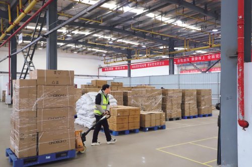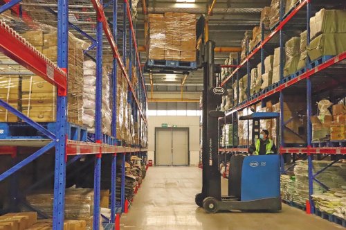京山倉內(nèi)配備的叉車提高了進(jìn)出貨作業(yè)效率。