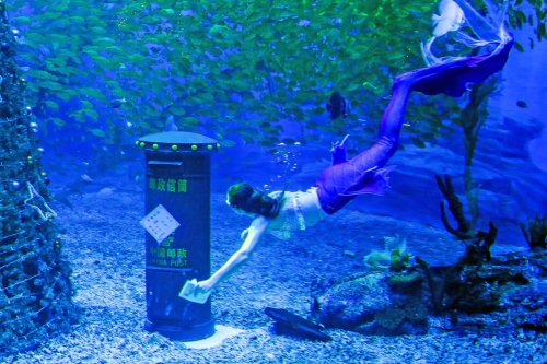該郵局由鄭州市郵政分公司與鄭州海昌極地海洋公園有限公司聯(lián)合打造,旨在推動傳統(tǒng)書信文化與旅游產業(yè)深度融合,進一步促進“文旅相融”。游客在“海底郵局”購買各類與海洋主題相關的明信片,書寫來自大海的祝福語郵寄給親友,“美人魚”小姐姐會把經過防水處理的明信片投入位于“海底”的郵筒。
