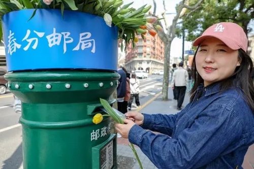 活動(dòng)現(xiàn)場(chǎng)不僅設(shè)置有“明信片墻”,更是將綠色郵筒打造成了春意滿(mǎn)滿(mǎn)的“郁金香花筒”,一時(shí)間吸引了眾多市民、游客打卡拍照,大家進(jìn)入郵局后領(lǐng)取明信片書(shū)寫(xiě)、貼郵票、蓋紀(jì)念戳、郵寄,用這種方式共同傳遞上海春日的美好。