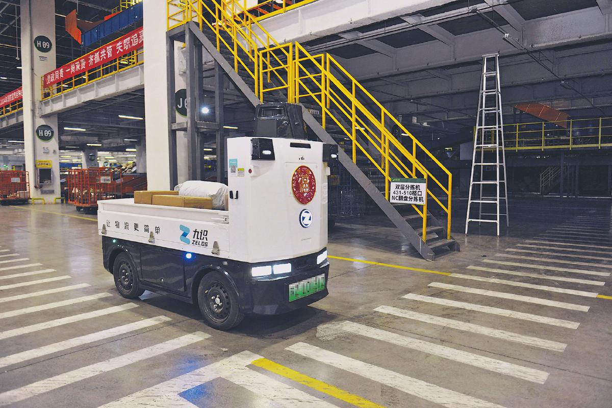 從窄帶區(qū)格口到最遠的裝車垛口差不多有200米距離,一名熟練的分揀員推著裝滿郵件的沉重籠車走完一趟至少用10分鐘,而無人盤駁車完成同等強度的工作只需要6分鐘?!盎\車本身的自重就很重,裝滿郵件后要想推動它就變得比較困難,有時候就得兩個人一起推,導致分揀線上人手更加緊張。郵件還會遮擋視線,籠車撞到柱子上的事情也時有發(fā)生。無人盤駁車的運行很好地解決了這些問題。只要分揀員用手機里的小程序下達指令,無人盤駁車就可以不知疲倦地穿梭往來于格口和垛口之間,有效節(jié)省了人力成本?!焙鷦P說。