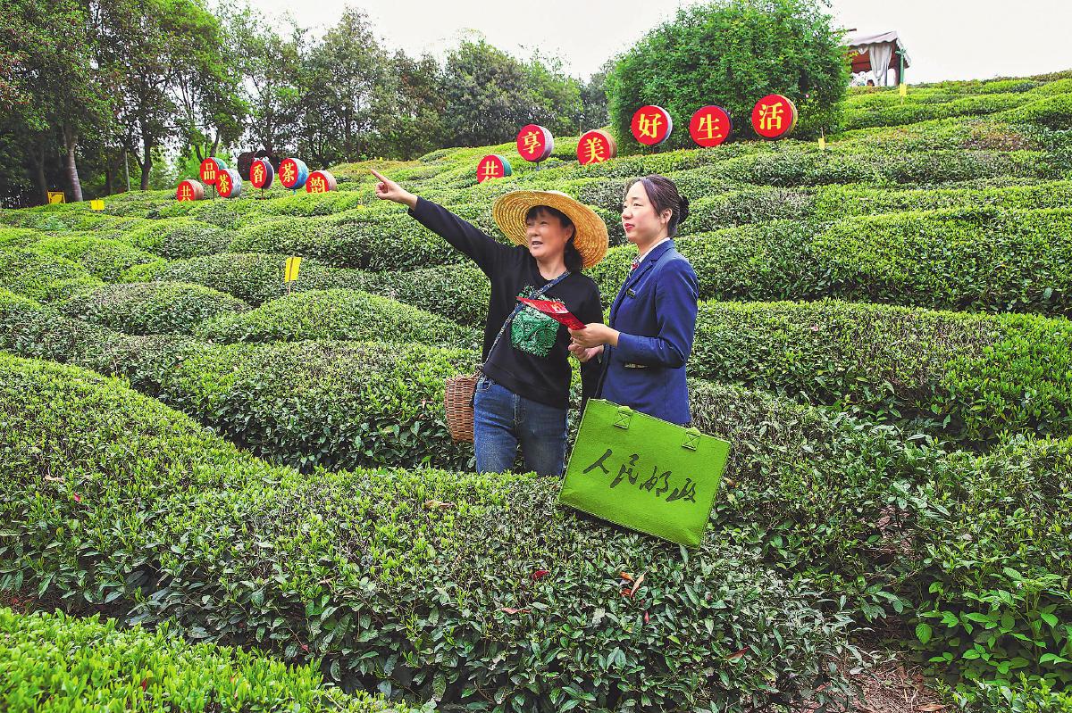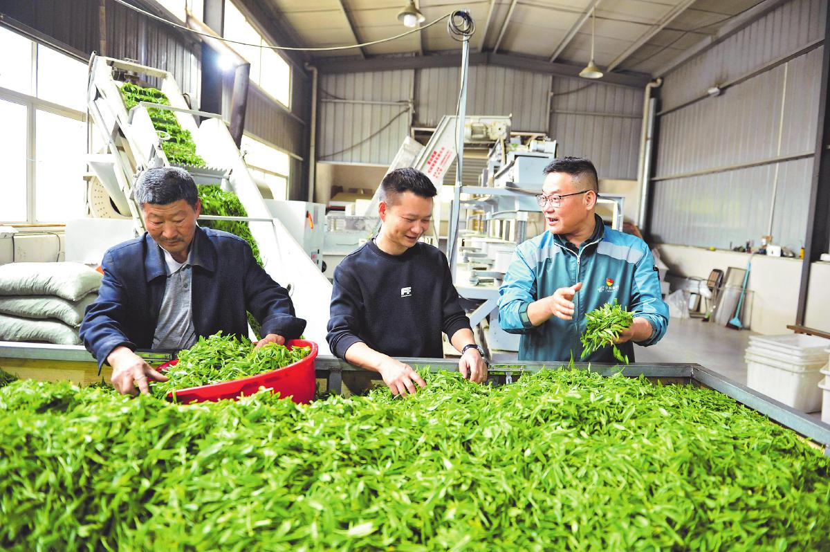 隨著新茶上市旺季的到來,茶農(nóng)們上春山、采春茶,歷經(jīng)采摘、殺青、揉捻、烘焙等過程,在“郵政綠”的專業(yè)服務(wù)支撐下,一片片嫩綠的茶葉實現(xiàn)蝶變。它們沿著郵政網(wǎng)絡(luò)在山野鄉(xiāng)村、喧囂都市間“流淌”,最終進(jìn)入千家萬戶,化作一杯杯甘醇,沁人心脾。“郵政綠”托舉起鄉(xiāng)村振興的希望,將綠水青山真正轉(zhuǎn)化為金山銀山。