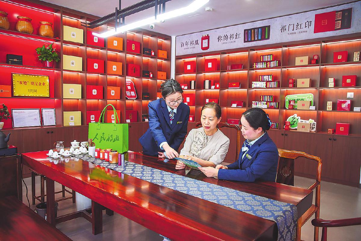郵政員工向紅茶企業(yè)負(fù)責(zé)人推介郵政綜合服務(wù)?!跣炖住z