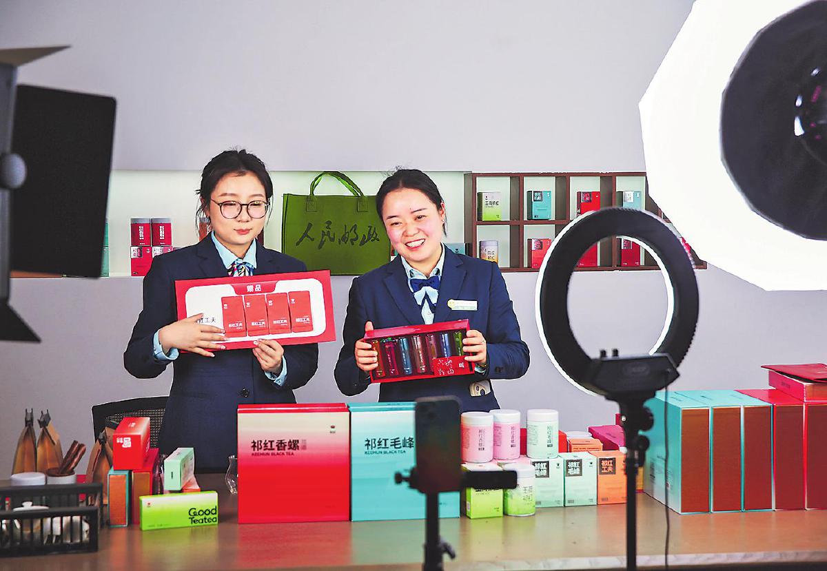 祁門縣郵政分公司員工開展祁門紅茶溯源直播?!跣炖住z
