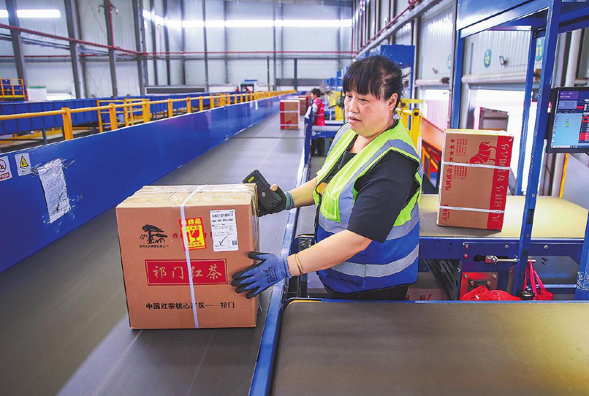 黃山市郵件處理中心優(yōu)先處理徽茶郵件。□徐雷 攝