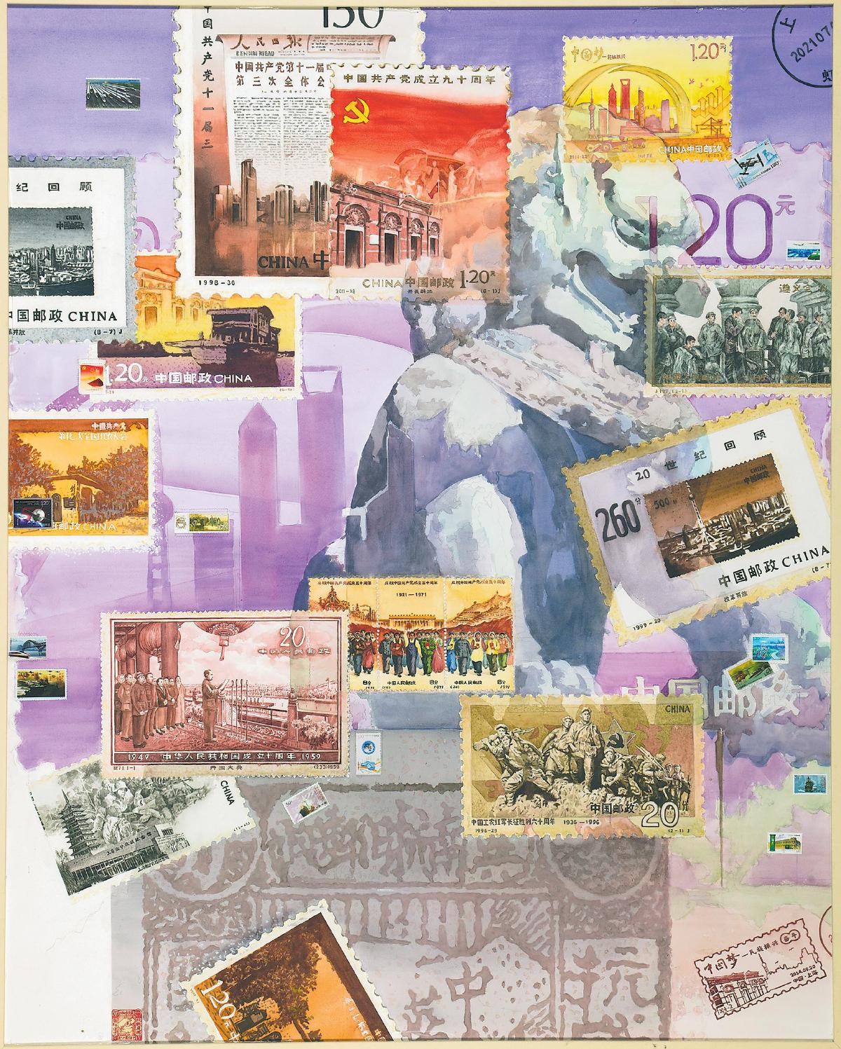 為了更好地完成畫作,田燕萍還請教了她的繪畫老師——浙江省美術(shù)家協(xié)會會員、水彩畫界策展人馬百齊?!胺酱鐚Ξ嬀?,頗有歷史和藝術(shù)的價值。”馬百齊肯定了田燕萍的創(chuàng)作思路,并在郵票選取、表現(xiàn)手法、繪畫技巧上對其進(jìn)行了專業(yè)的指導(dǎo)。