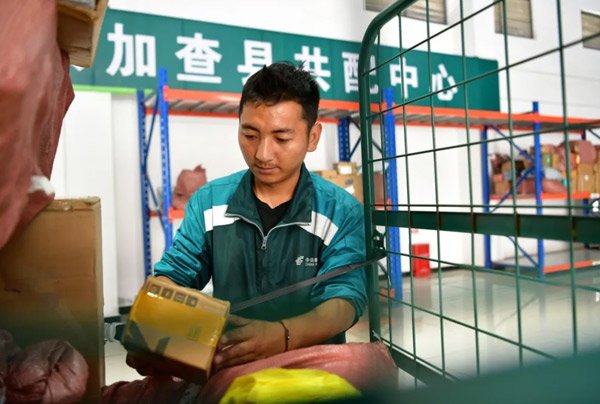 采訪組穿過村委會前的小廣場,走向設(shè)在村委會內(nèi)的寄遞物流綜合服務(wù)站,村民次仁頓珠正在這里忙著領(lǐng)取快遞?!拔仪皟商斐鋈?wù)農(nóng),不在家,就讓投遞員把東西放站點了,今天過來取件。”他一邊在簽收本上簽字,一邊笑著跟采訪組說道,“以前取快遞特別不方便,得到縣里去,要么就得托人捎帶,費時又費力?!?/p>