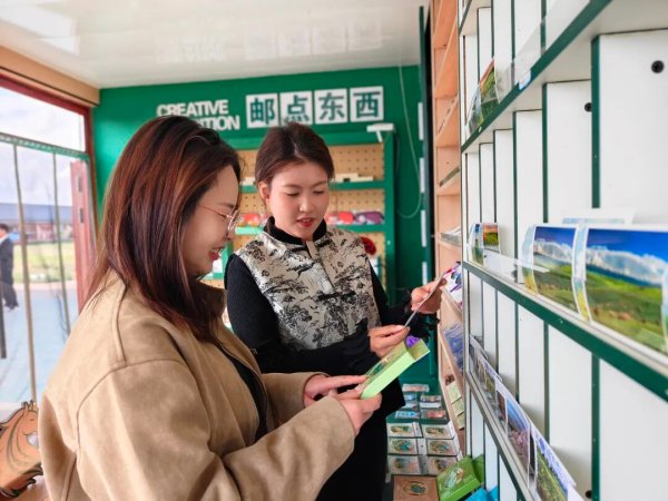 “馬上”郵局營(yíng)業(yè)員彩紅說(shuō):“我手里的這款明信片是異形明信片,明信片上是伊犁風(fēng)光,有天馬的元素,還有流蘇,很有設(shè)計(jì)感。我們還開發(fā)了以伊犁景點(diǎn)為主題的流沙冰箱貼,其中這款紫色的薰衣草冰箱貼是我們這里的爆款。”