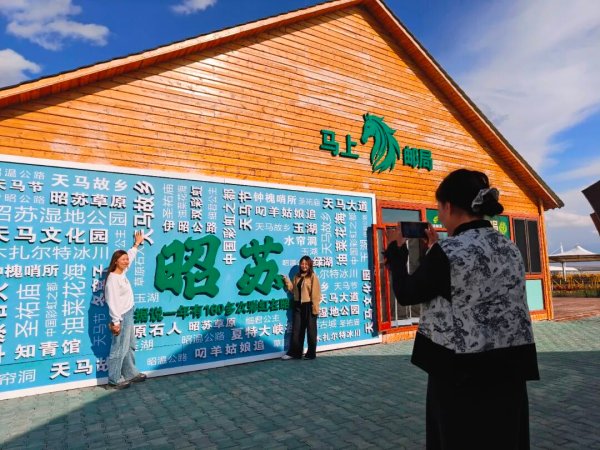 廣東省梅州市游客李女士說(shuō):“‘馬上’郵局很有特色,還有一個(gè)網(wǎng)紅墻可以拍照,隨意凹造型。平時(shí)我也會(huì)去景點(diǎn)購(gòu)買明信片、冰箱貼當(dāng)做伴手禮,我要把我手里的明信片郵寄給朋友。”