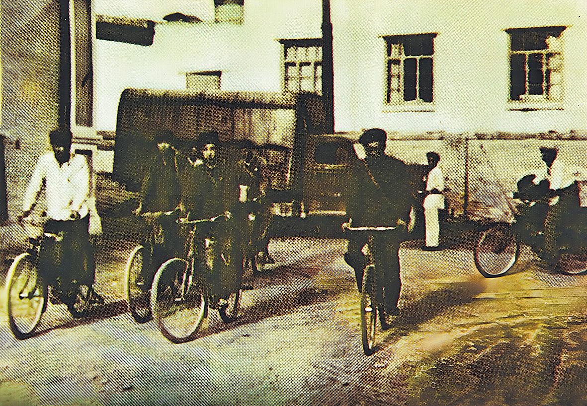 20世紀(jì)50年代,新疆郵政投遞員出班。