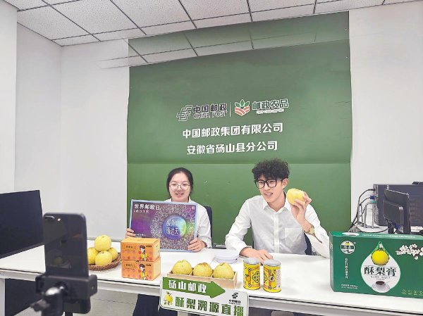 10月9日,安徽省碭山縣郵政分公司緊扣碭山酥梨特色農(nóng)業(yè)產(chǎn)業(yè),開展“鄉(xiāng)村振興 郵我助力”世界郵政日主題直播活動。在直播間,主播重點展示了郵政為酥梨產(chǎn)業(yè)量身打造的源頭品控、專業(yè)包裝、冷鏈運輸?shù)纫惑w化服務方案,彰顯郵政有效助力地方經(jīng)濟發(fā)展、服務鄉(xiāng)村振興的新作為?! 醴亢榱帷z影報道