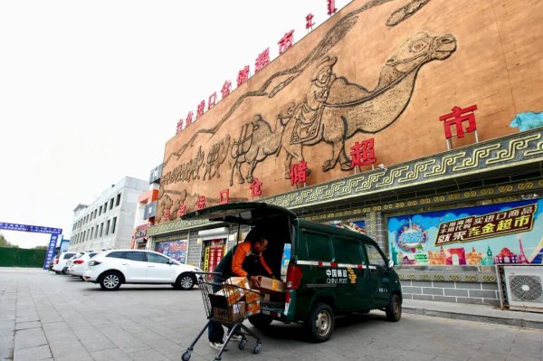 在二連浩特市的垚金進口倉儲超市里,攬收員廖海雨一天兩次來攬收郵件,使游客們買到的商品能夠當(dāng)天發(fā)出直發(fā)回家。